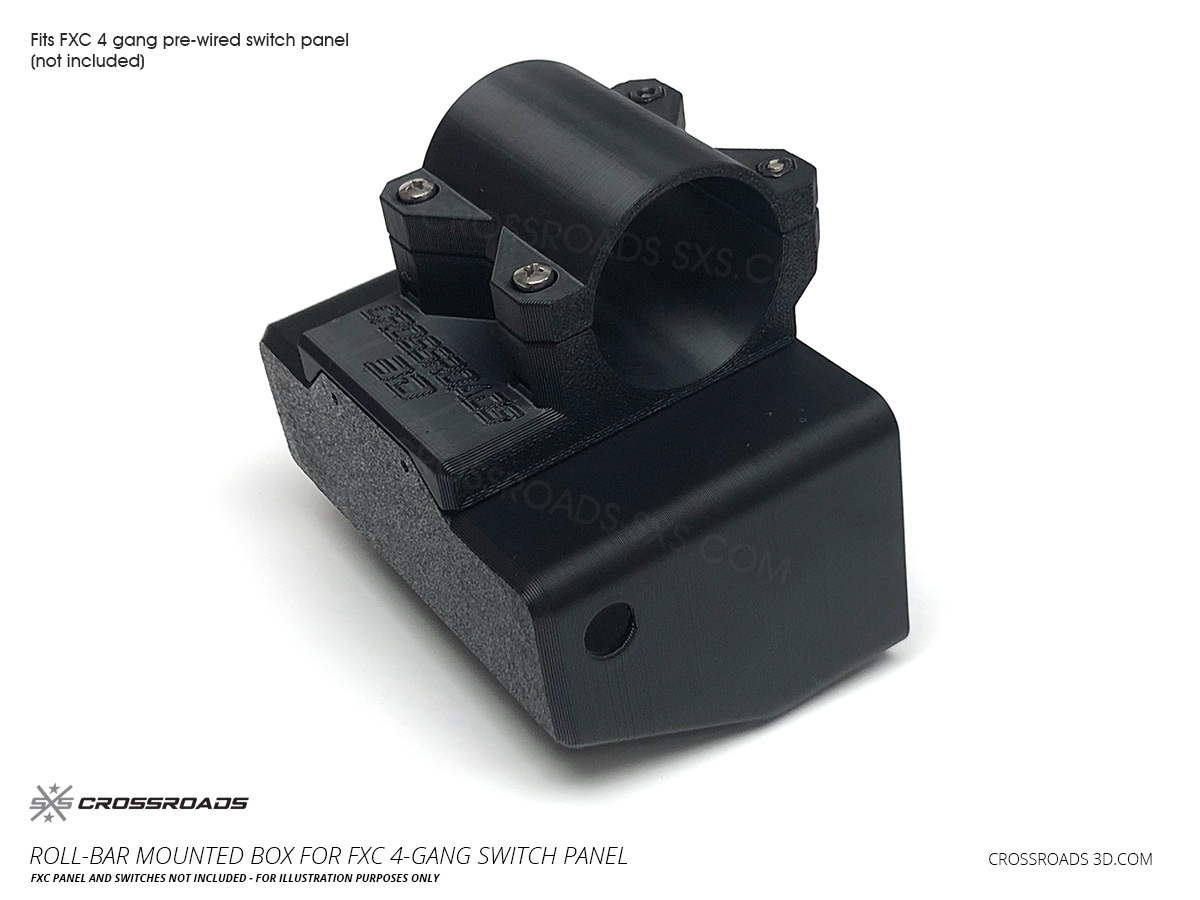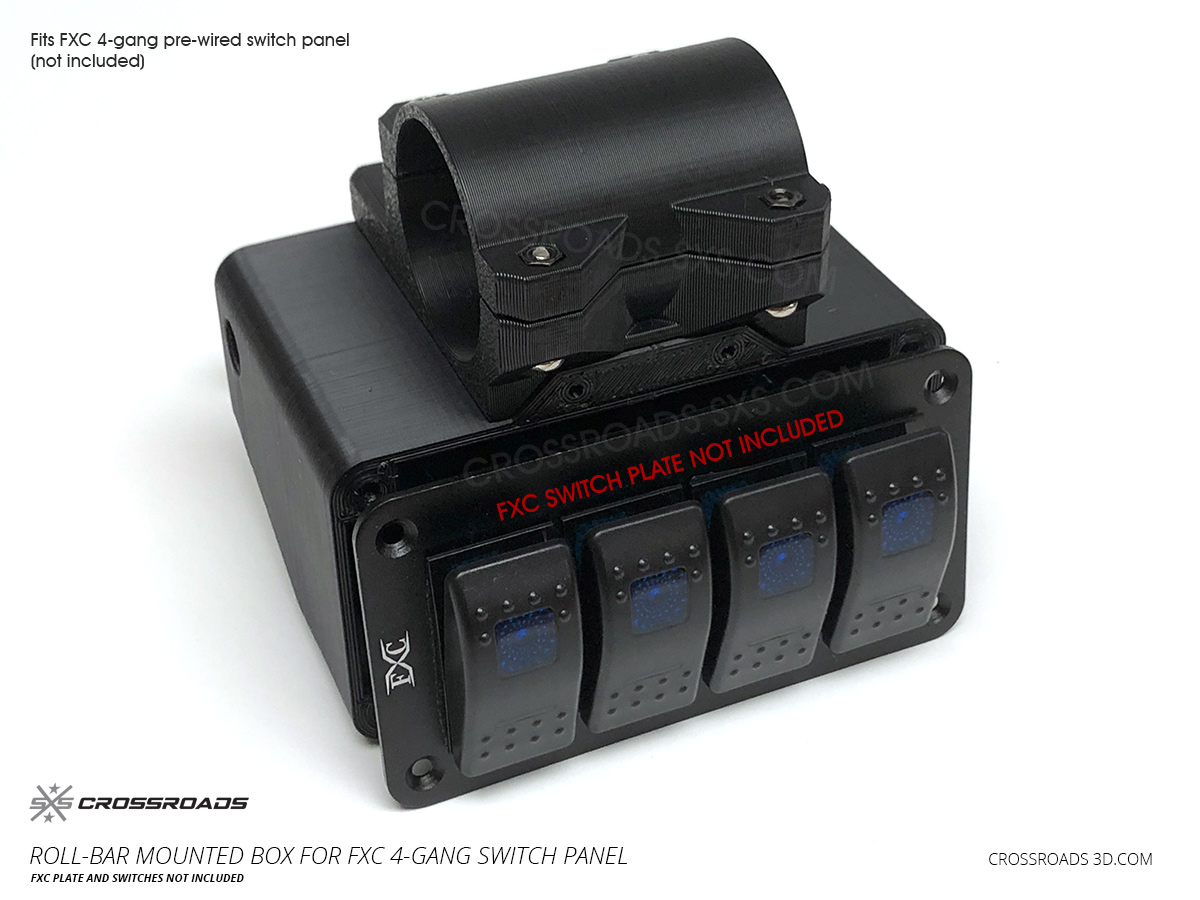 This roll-bar-mounted switch panel pairs up with 4-Gang pre-wired switch panel, like the “FXC” brand and others. (available here).