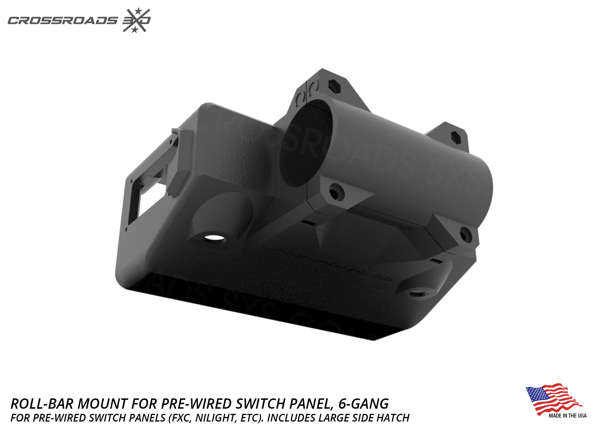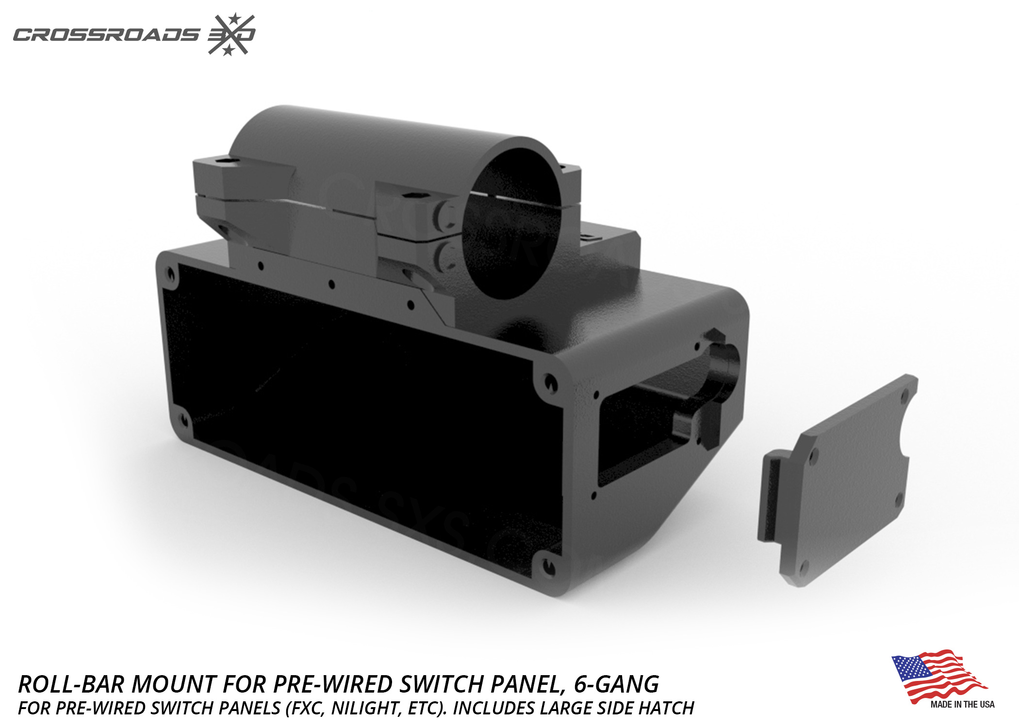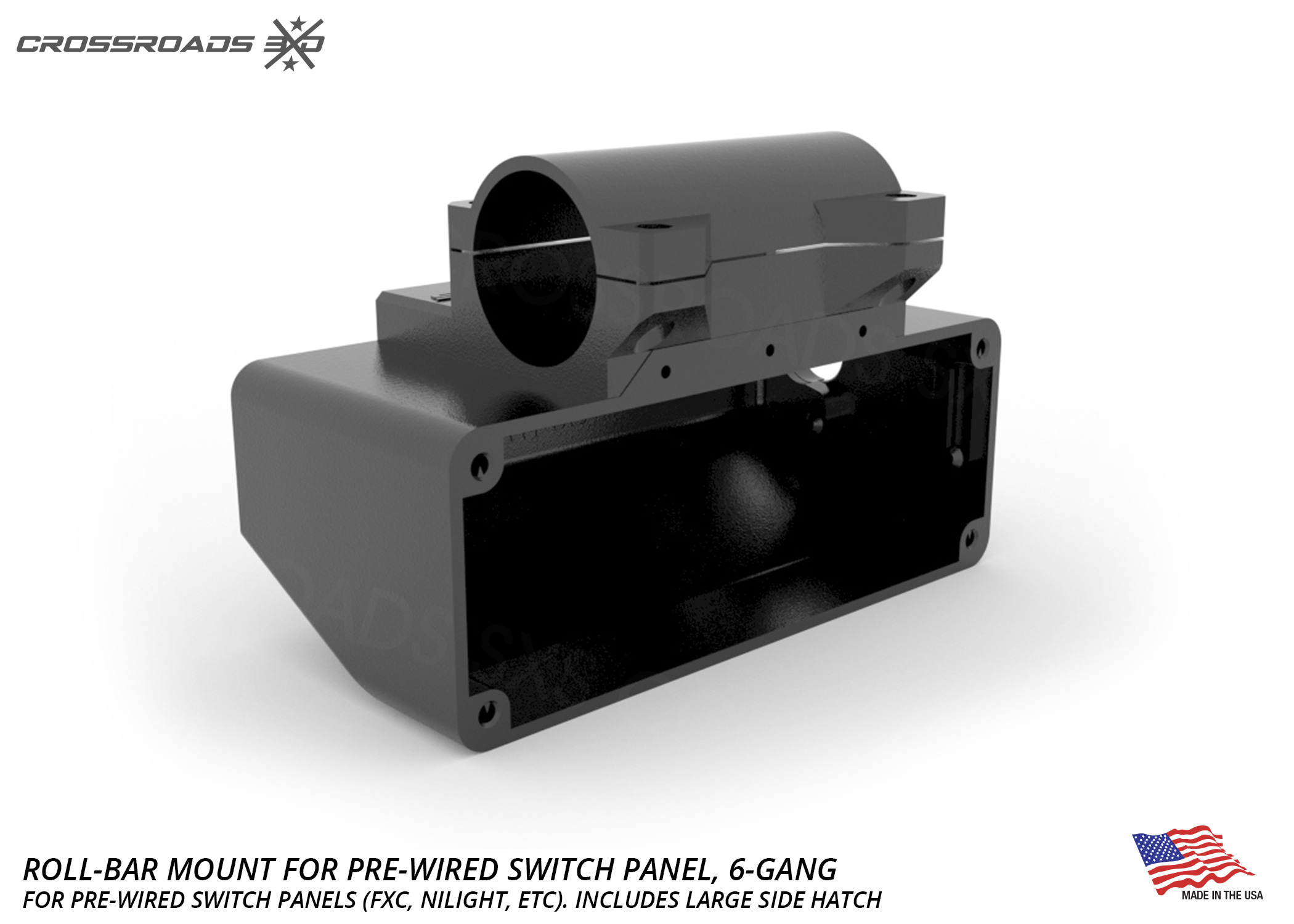 This roll-bar-mounted switch panel pairs up with 6-Gang pre-wired switch panels, like the “FXC” or “Nilight” brand panels and others. (available here)