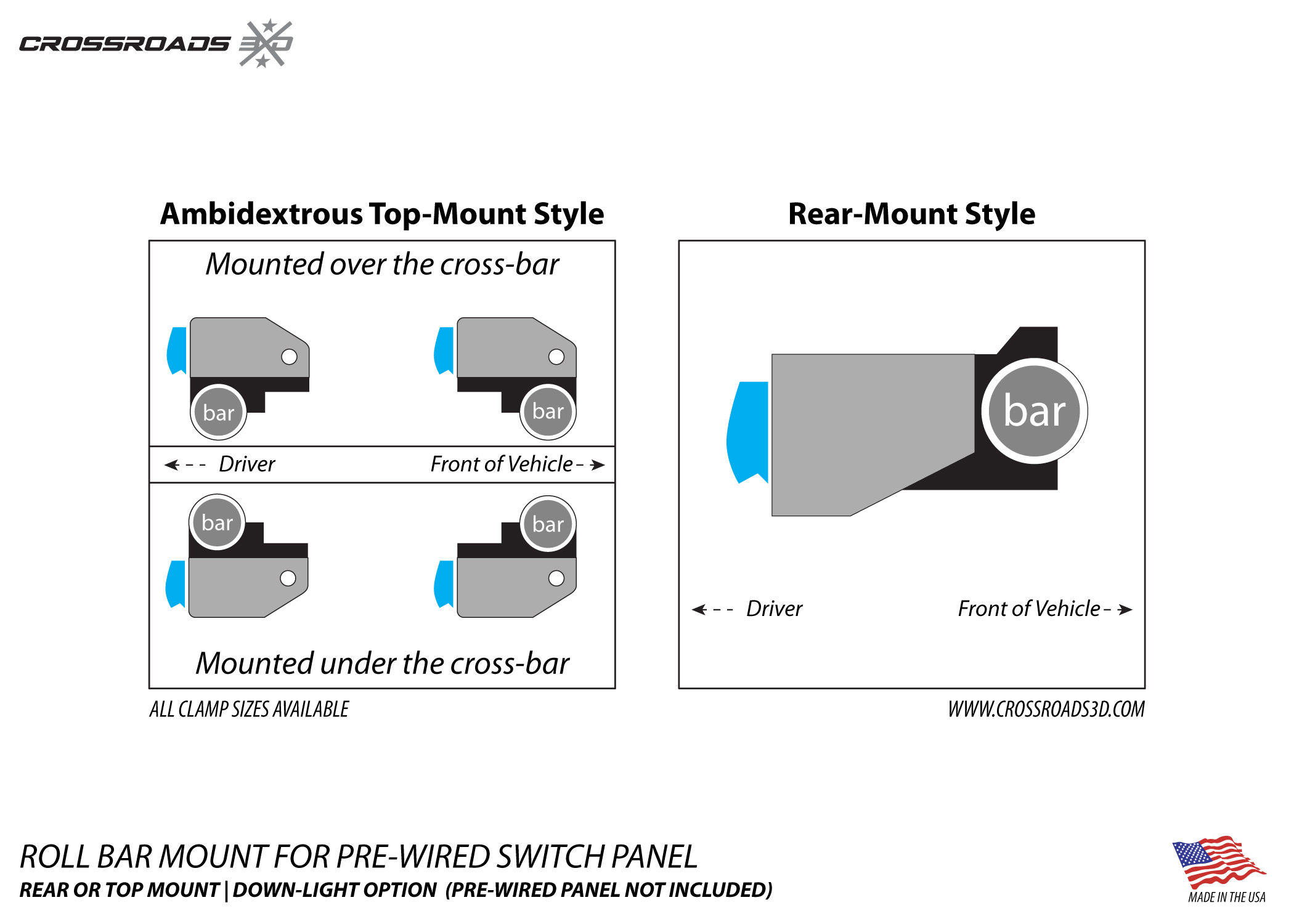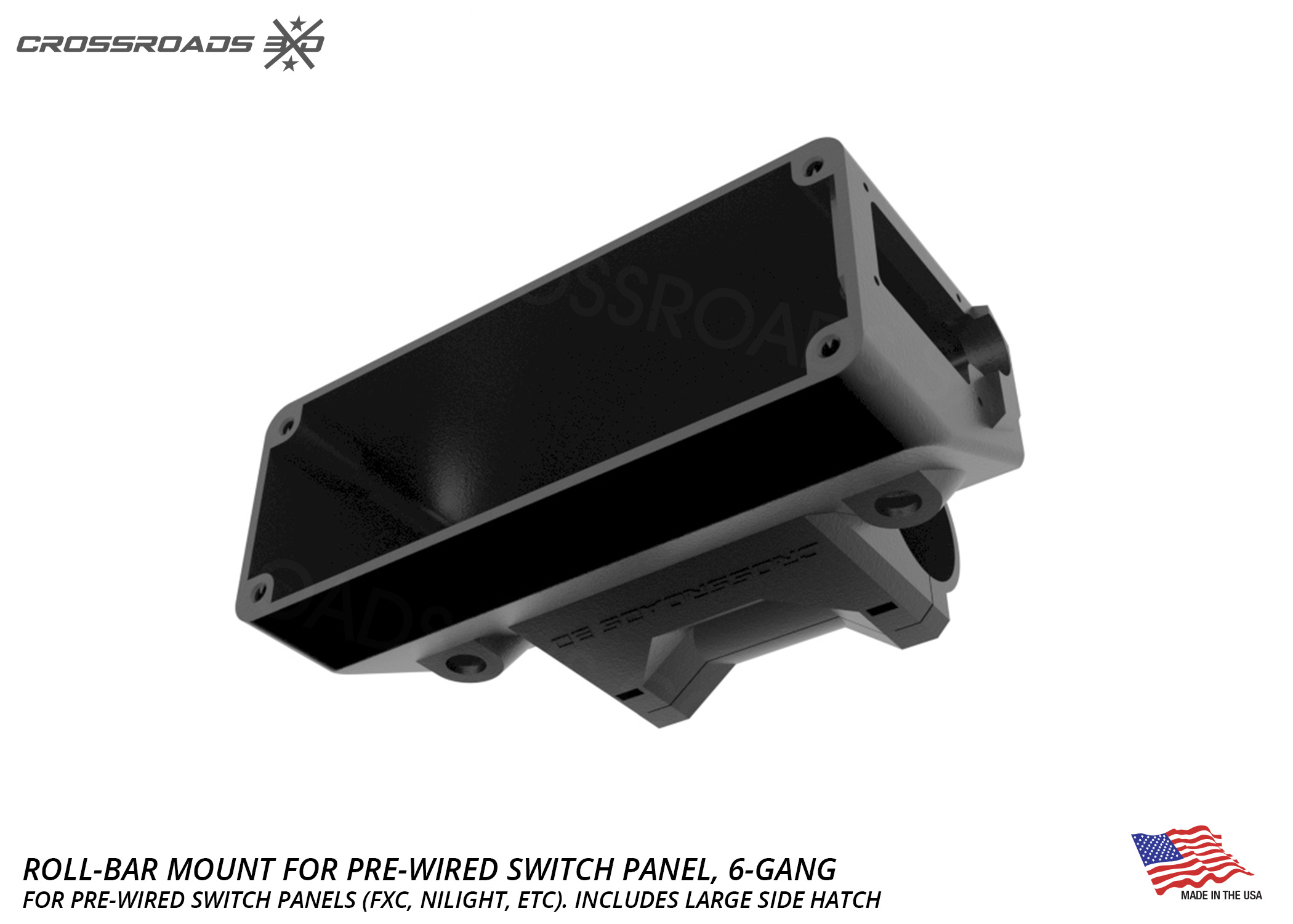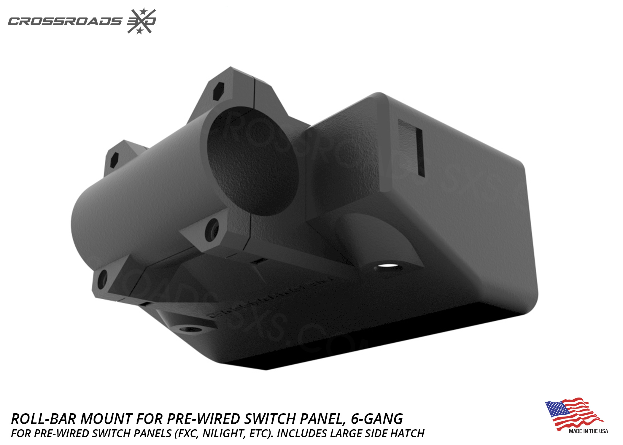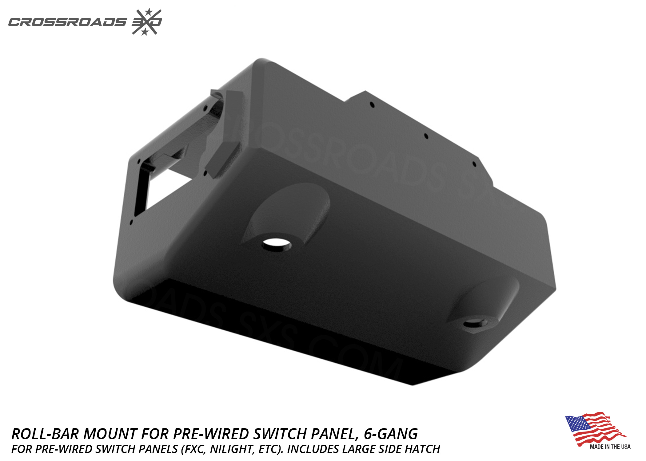 This roll-bar-mounted switch panel pairs up with 6-Gang pre-wired switch panels, like the “FXC” or “Nilight” brand panels and others. (available here)