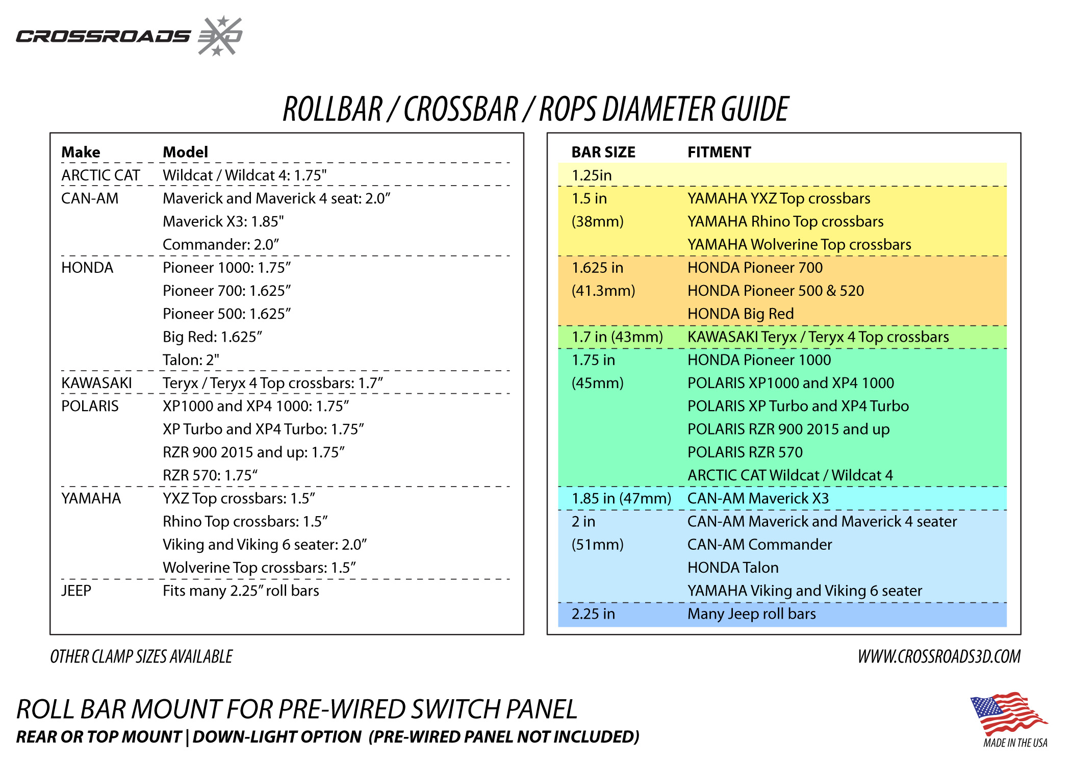 FITMENT: use the guide above to see what size to order. Please measure the diameter of your cross-bar to be certain.