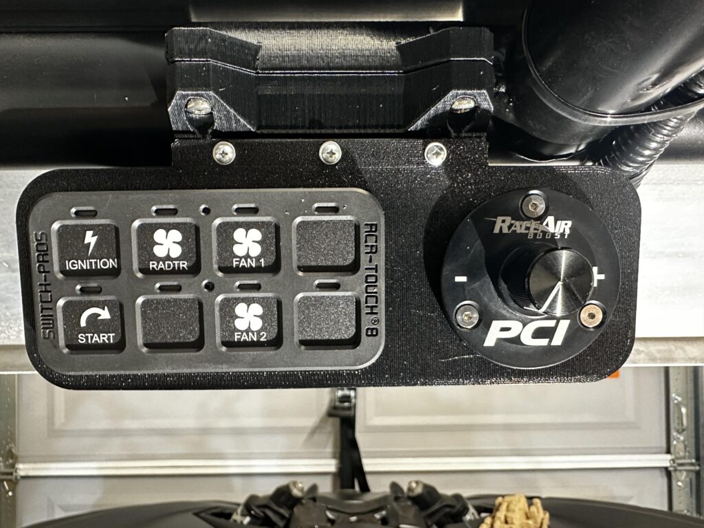 This roll-bar-mounted switch panel pairs up with a Switch-Pro SP 9100 8-Gang pre-wired switch panel plus another hole or slot of your choice to the side. (Contact me for your customization needs.)