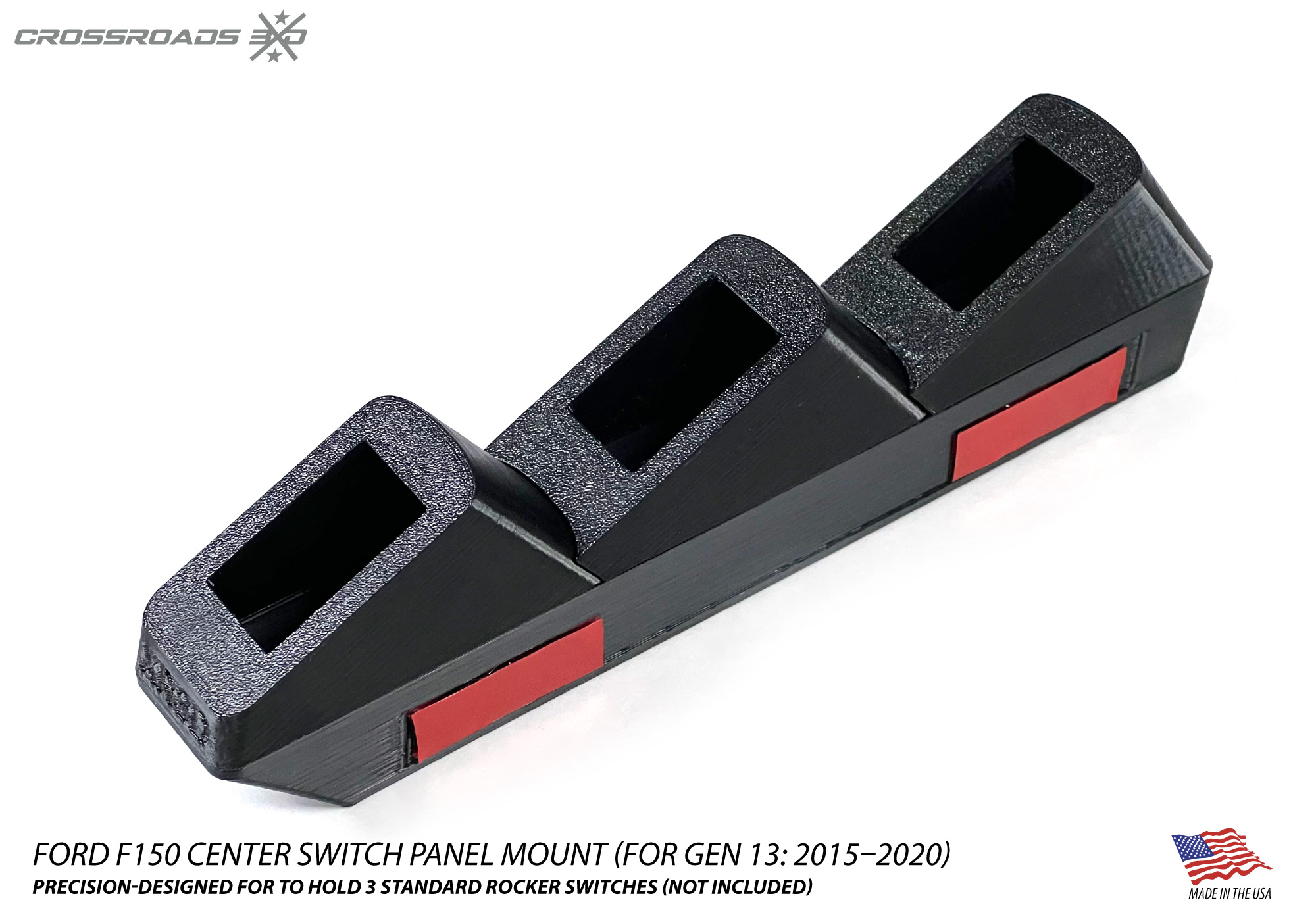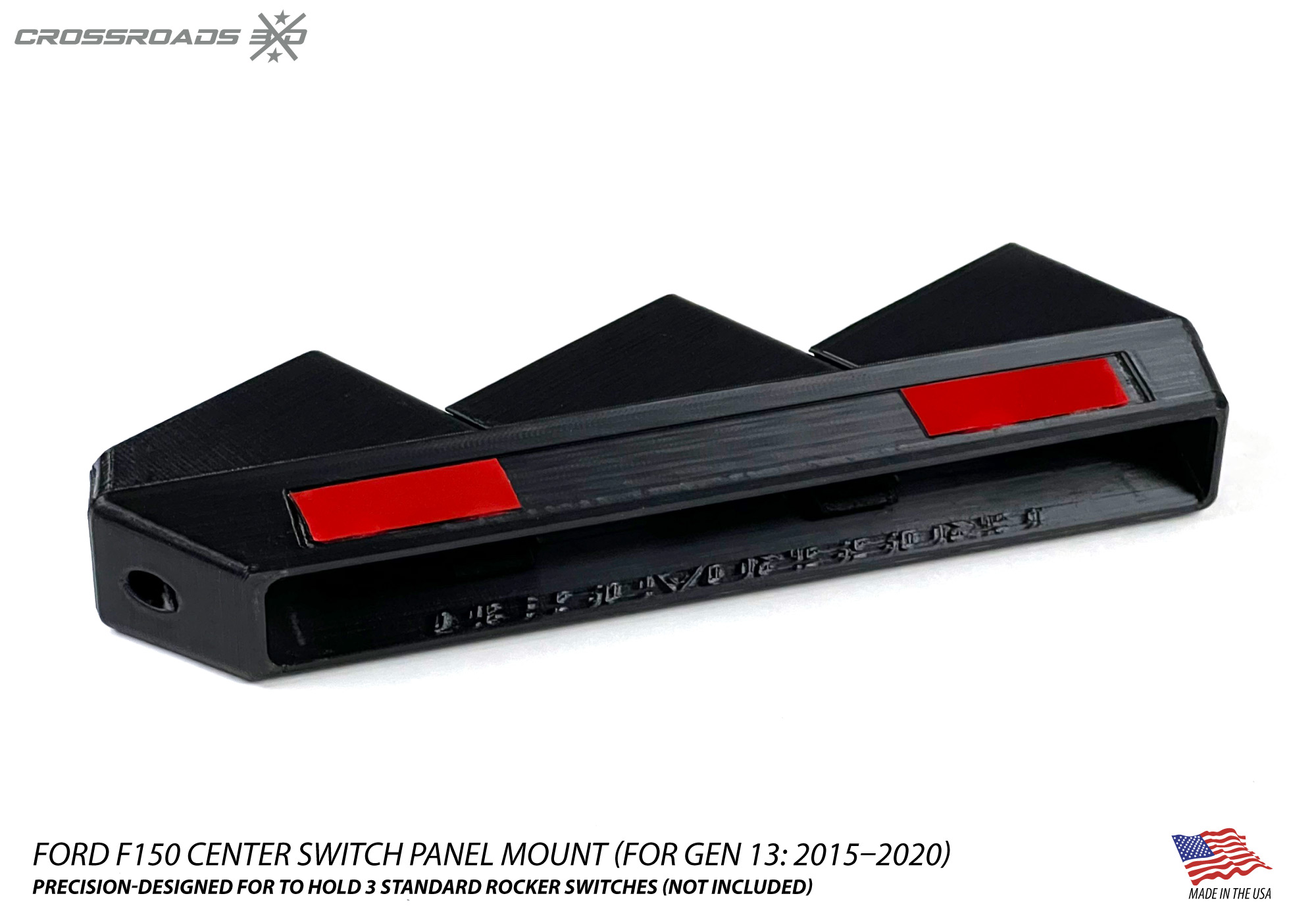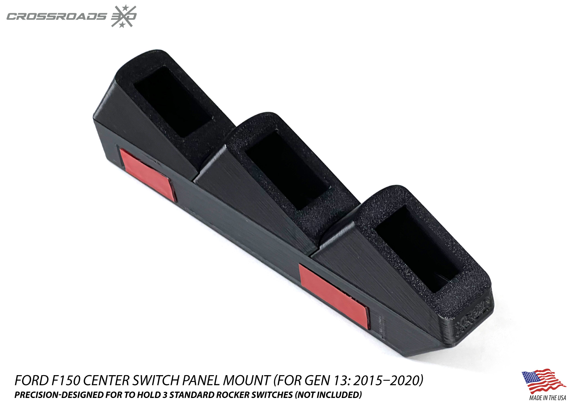 Introducing our Console Switch Panel Mount designed specifically for Gen 13 Ford F-150 pickups (2015-2020,) providing a seamless and organized solution for integrating additional switches into your truck's console. This switch panel mount is crafted with precision to enhance both functionality and aesthetics, ensuring a perfect fit for your Ford F-150.