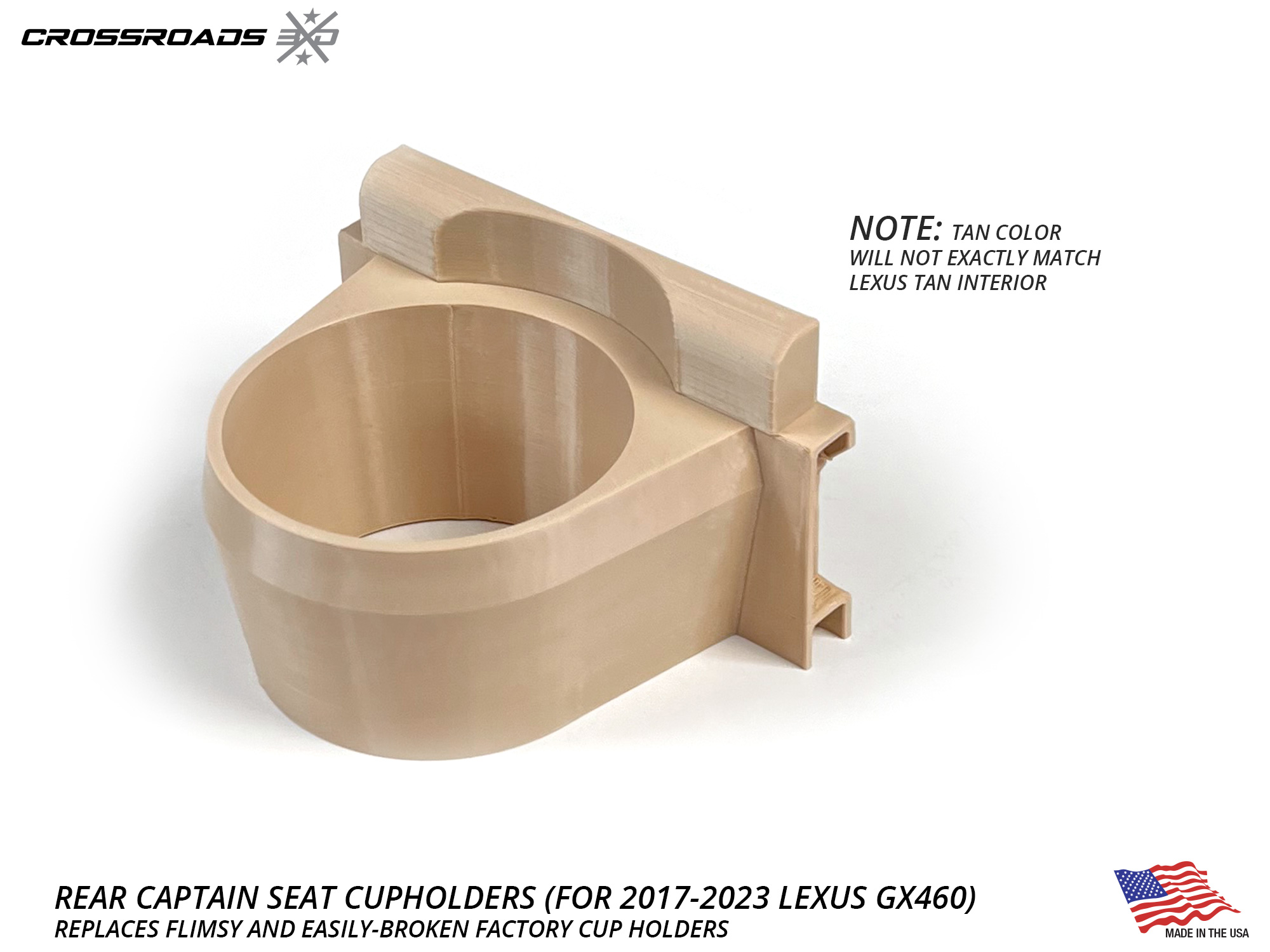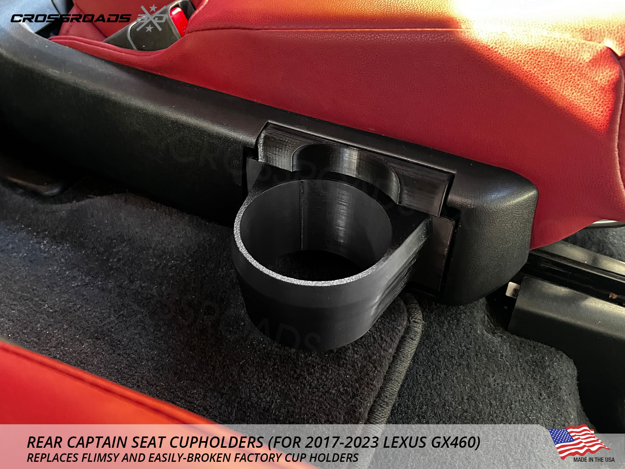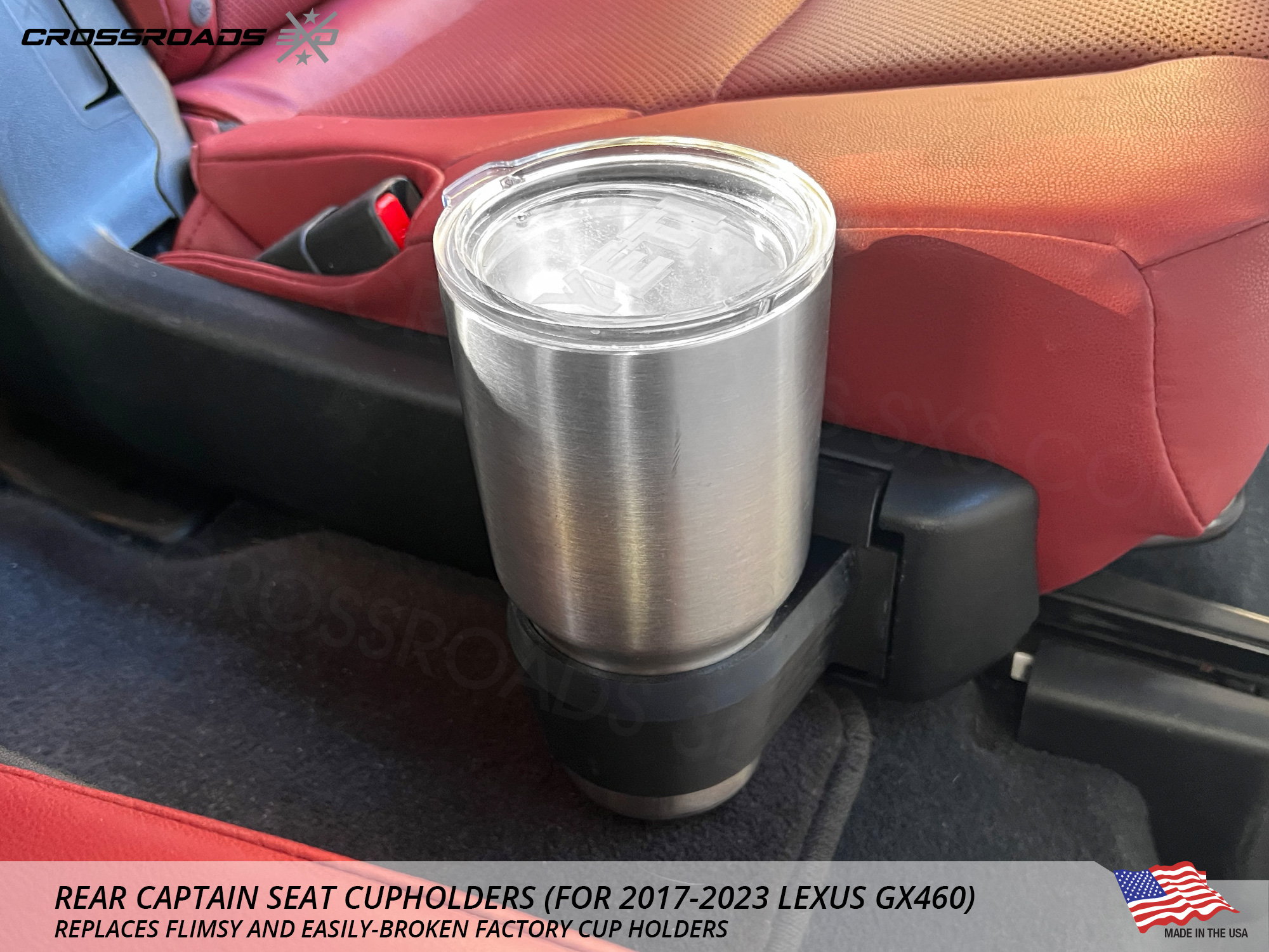 ![Cup Holder Upgrade for Rear Seat for Lexus GX460 (2017-2023) Precision Fit for Yeti 20, 30oz and Other tumblers [Captain Seat] - Image 4](https://crossroads3d.com/wp-content/uploads/2024/10/RCHGX460G3-3.jpg)