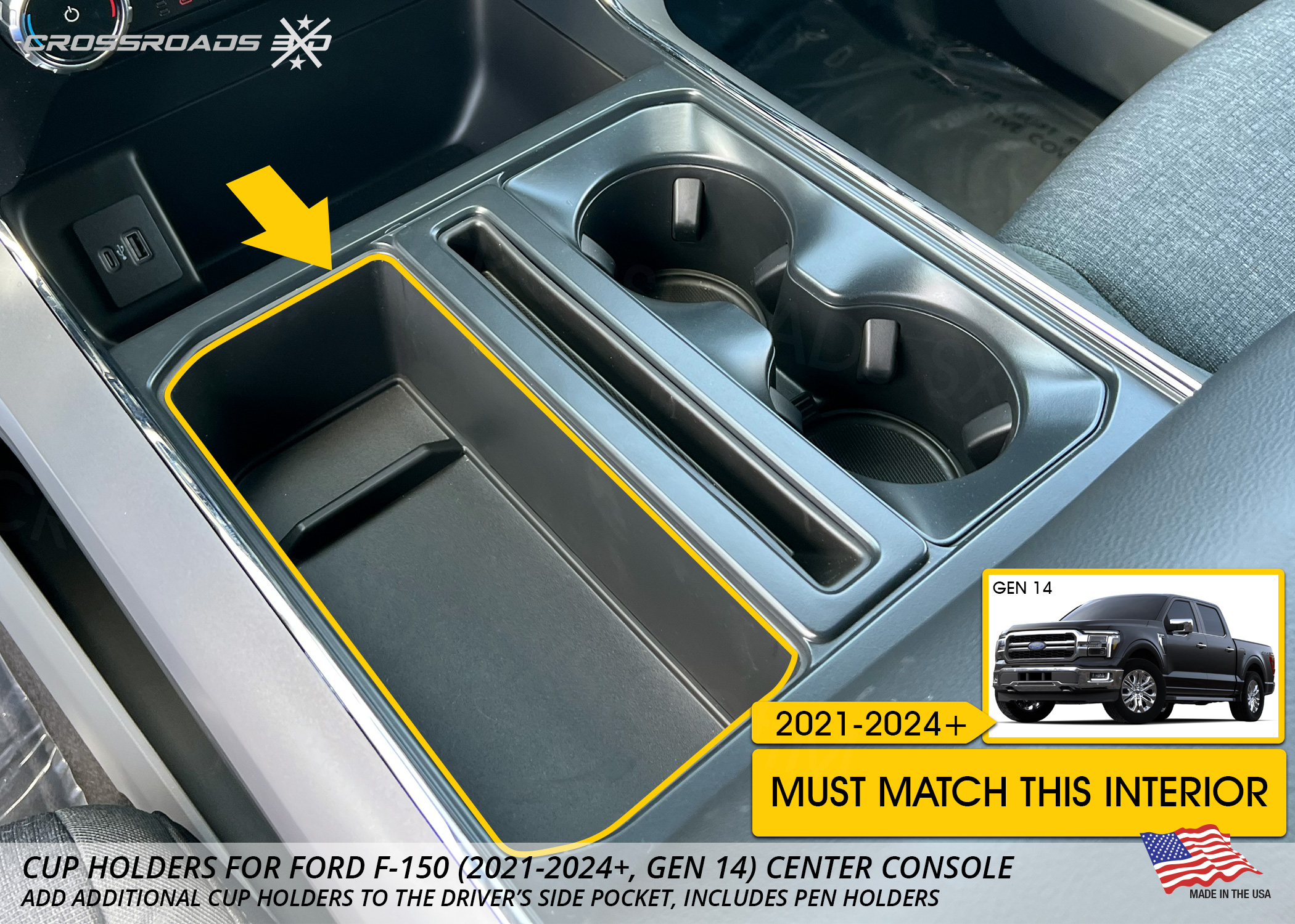 - Precision fit: The Crossroads dual cup holder slides into the existing driver's side pocket in the Ford F-150 (2021-2024).