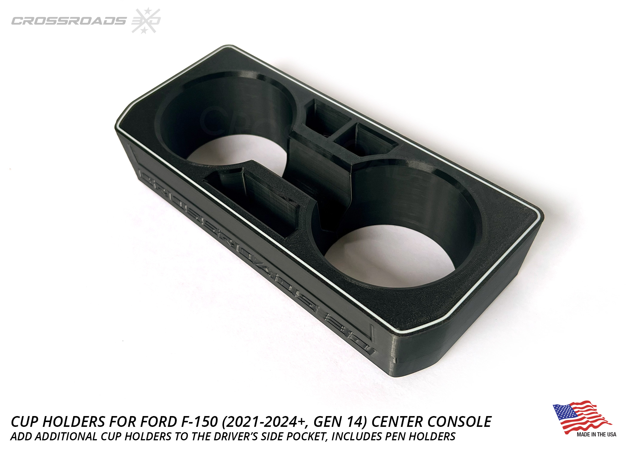 Crossroads 3D cup holder for Ford F-150 (14th Gen, 2021-2024) is a great accessory to add usefulness to the driver's side pocket in the console.