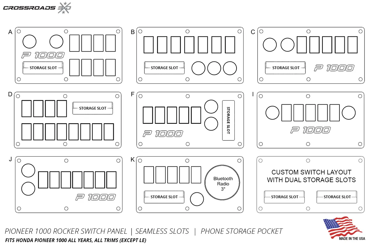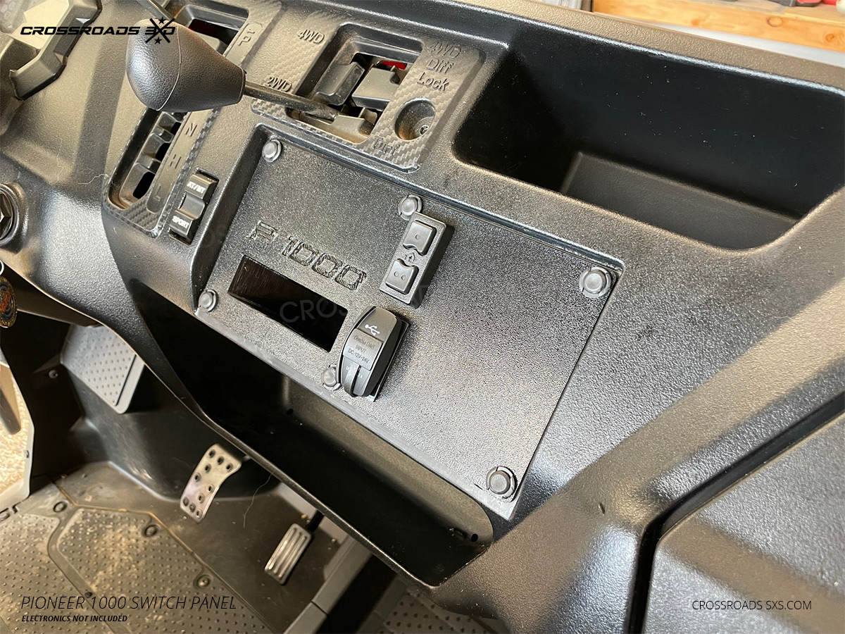 This switch panel replaces the center warning plate in your Pioneer 1000. Plate is 9.5″ wide, 4.75″ tall. - Easy install