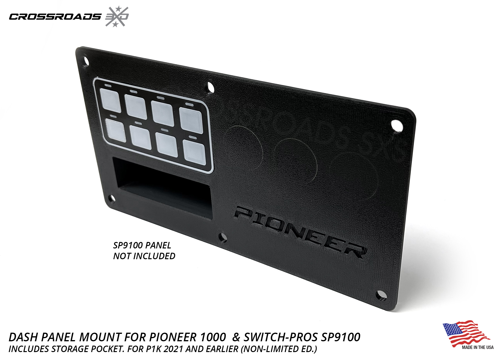 This switch panel replaces the center warning plate in your Pioneer 1000. Plate is 9.5″ wide, 4.75″ tall. - Easy install