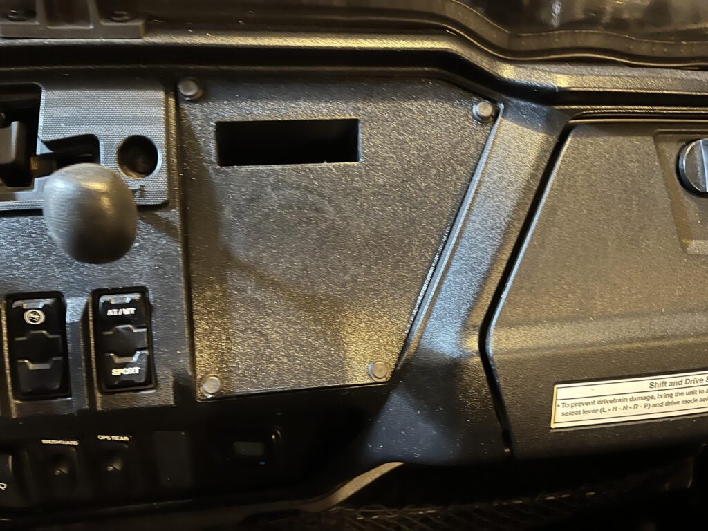 This switch panel replaces the center warning plate in your Pioneer 1000 LIMITED. Panel is 8″ wide, 7 3/4
