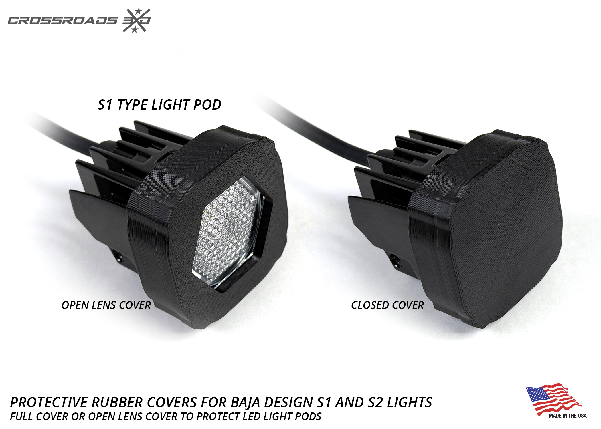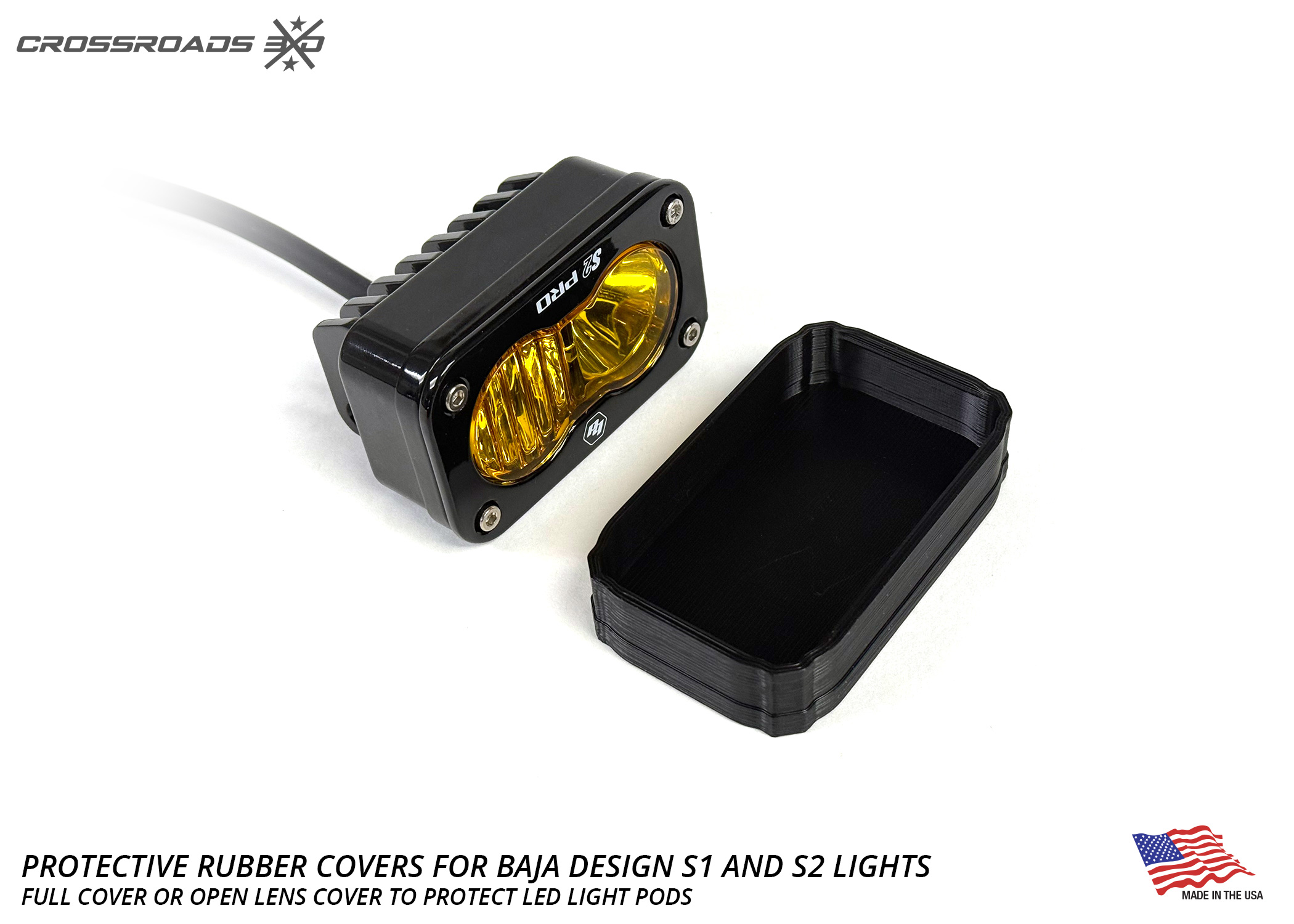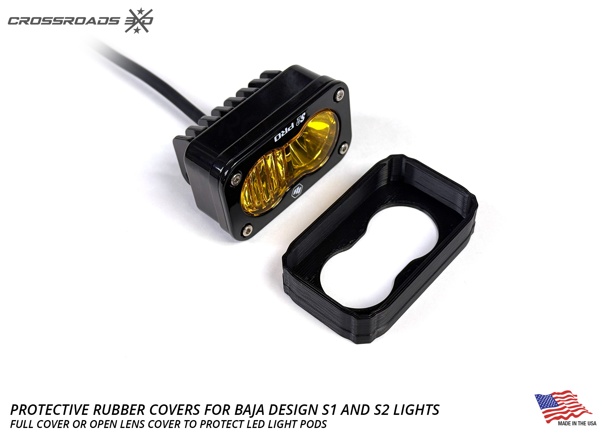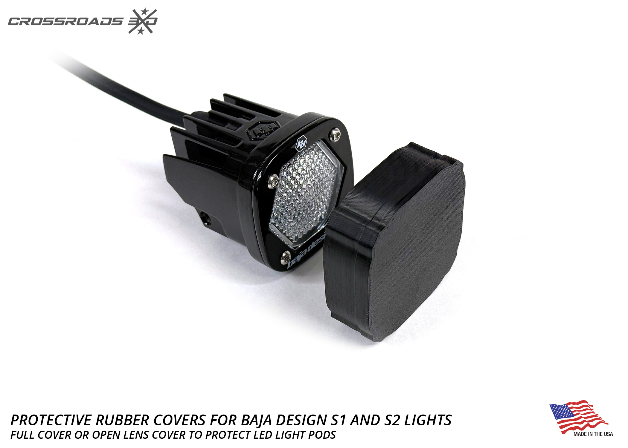 Protect your premium Baja Designs LED light pods from rocks, debris, branches, and trail damage without sacrificing style or performance. This durable rubber cover snaps onto the light and provides rugged protection for off-road abuse while maintaining a clean, low-profile look on your S1 or S2 series accessory LED pods.