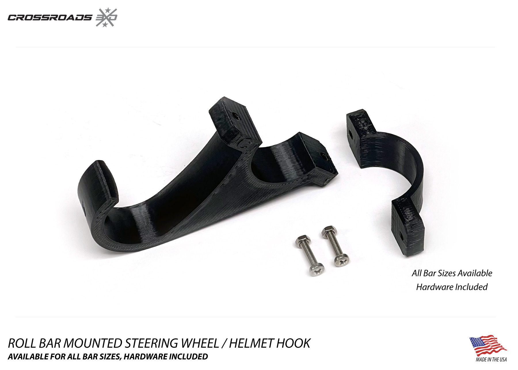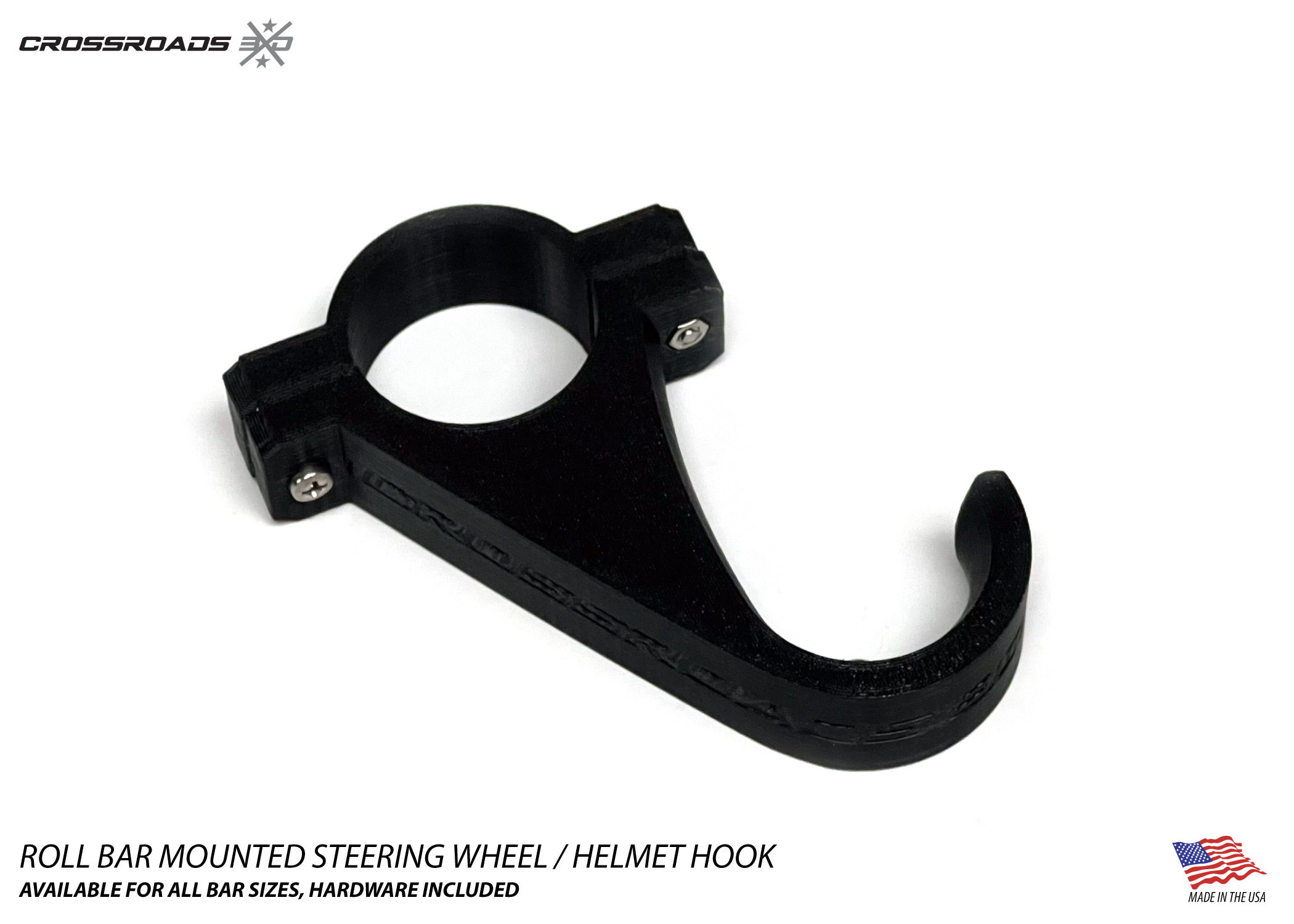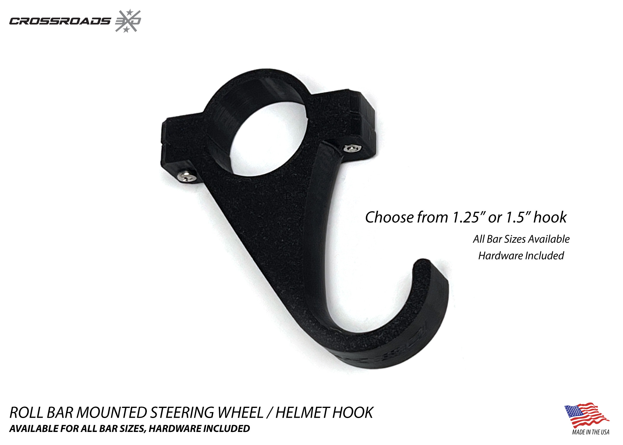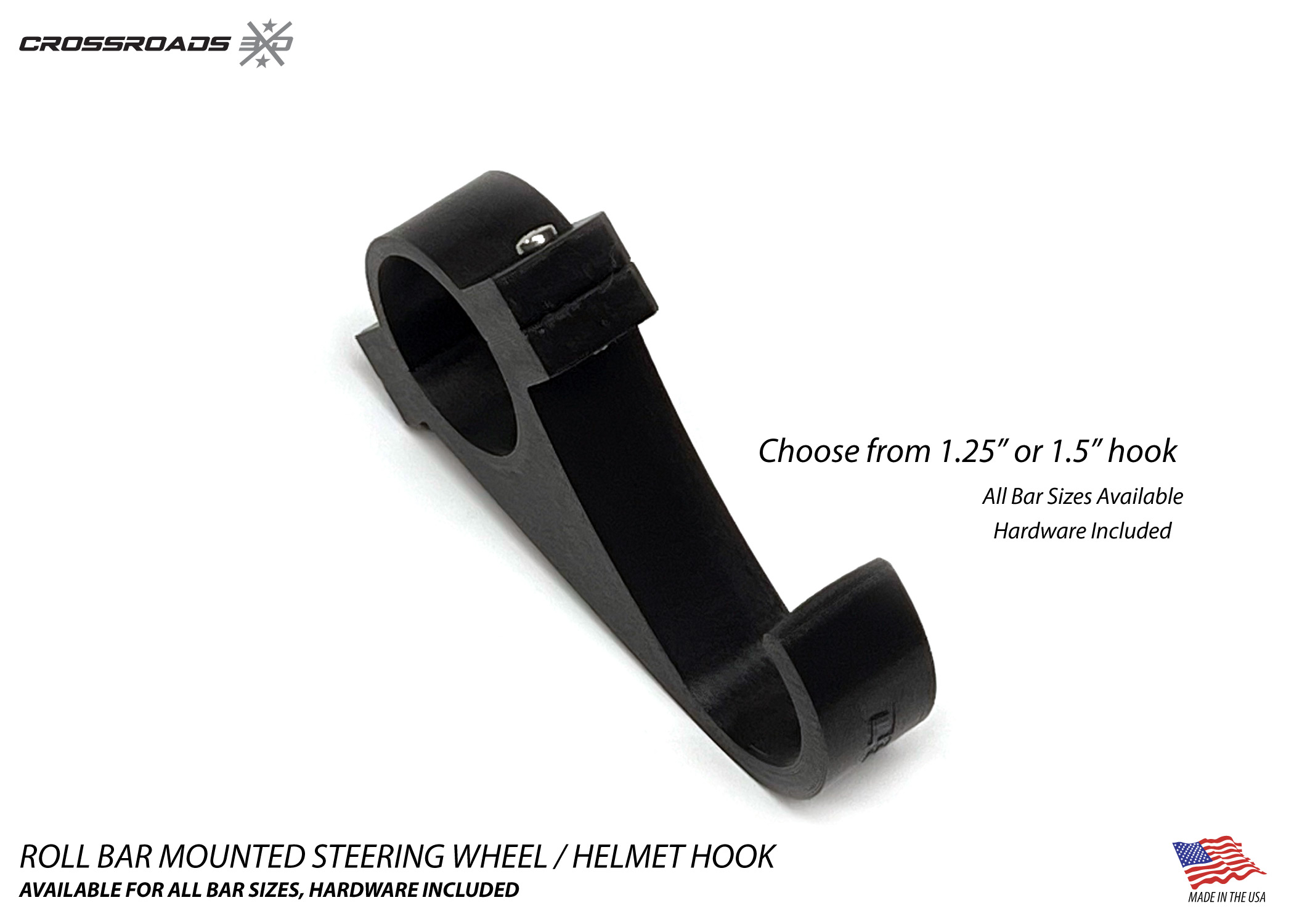 Tags: bar hook, helmet hanger, helmet hanging hook, helmet hook, rollbar hook, rops hook, steering wheel hanger, steering wheel hook