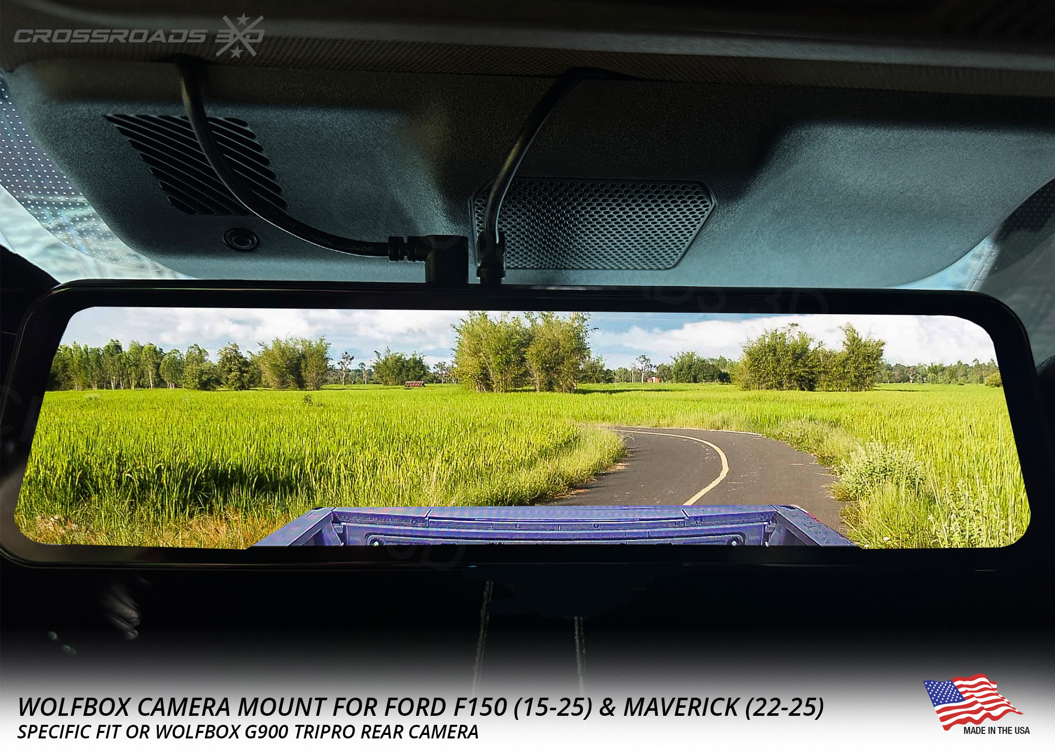 The Crossroads 3D Camera mount is precision-designed to fit the Wolfbox G900 Tripro rear camera (not included.)