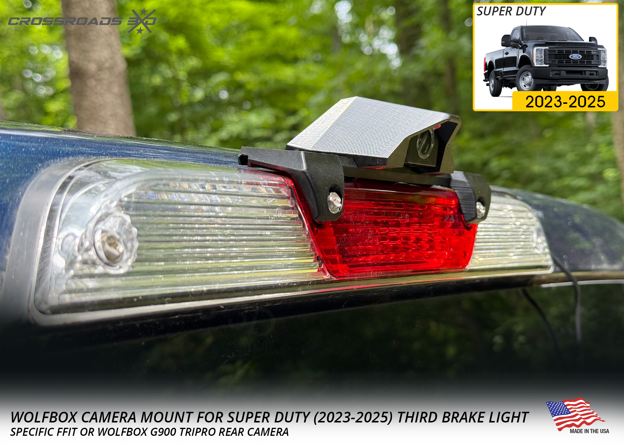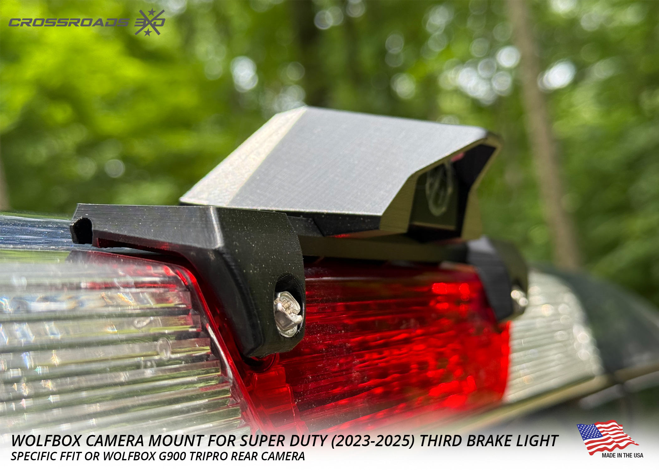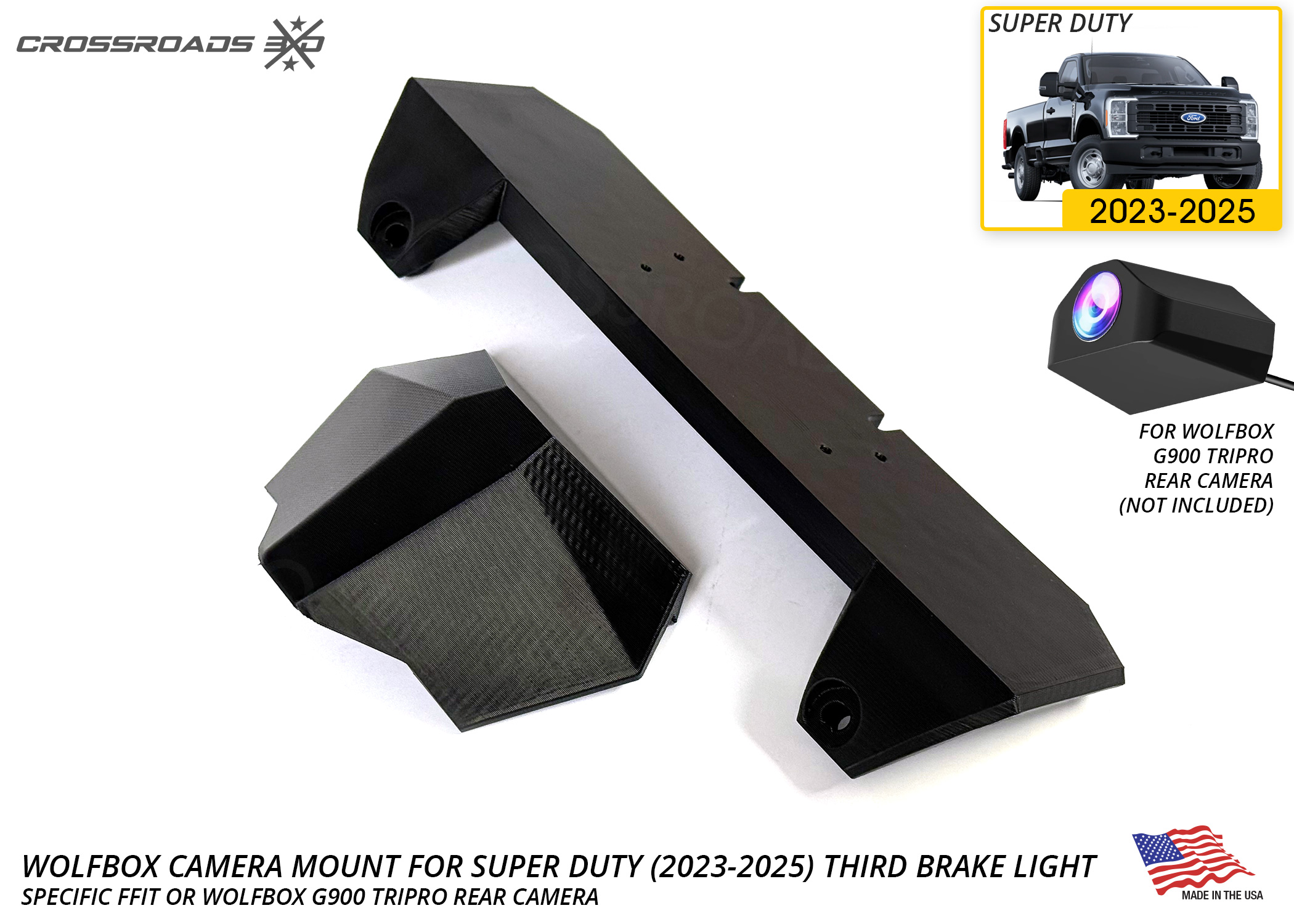 The Crossroads 3D Camera mount is precision-designed to fit the Wolfbox G900 Tripro rear camera (not included.)