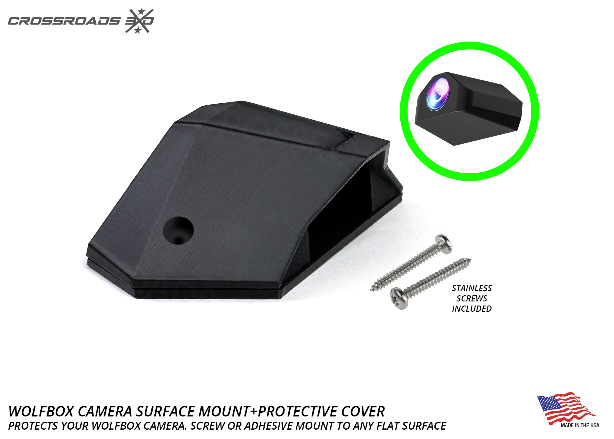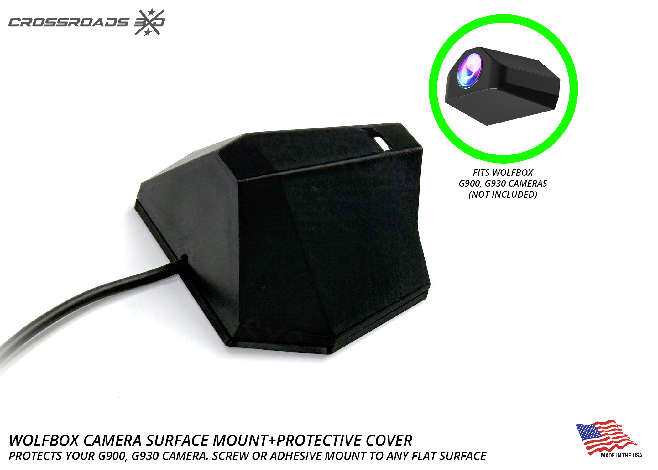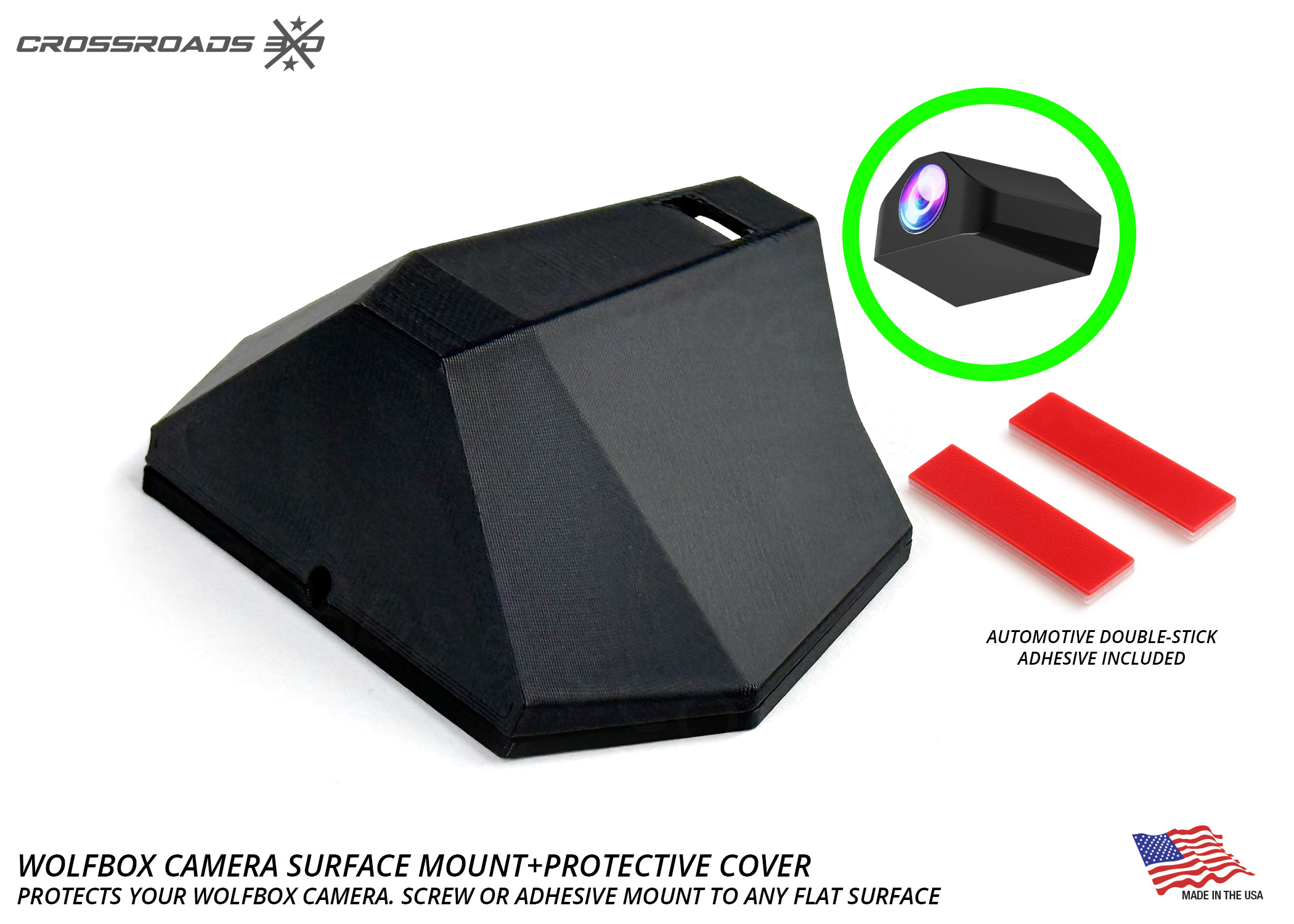 The Crossroads 3D Camera mount is precision-designed for the Wolfbox G900 / G930 style camera (not included.)